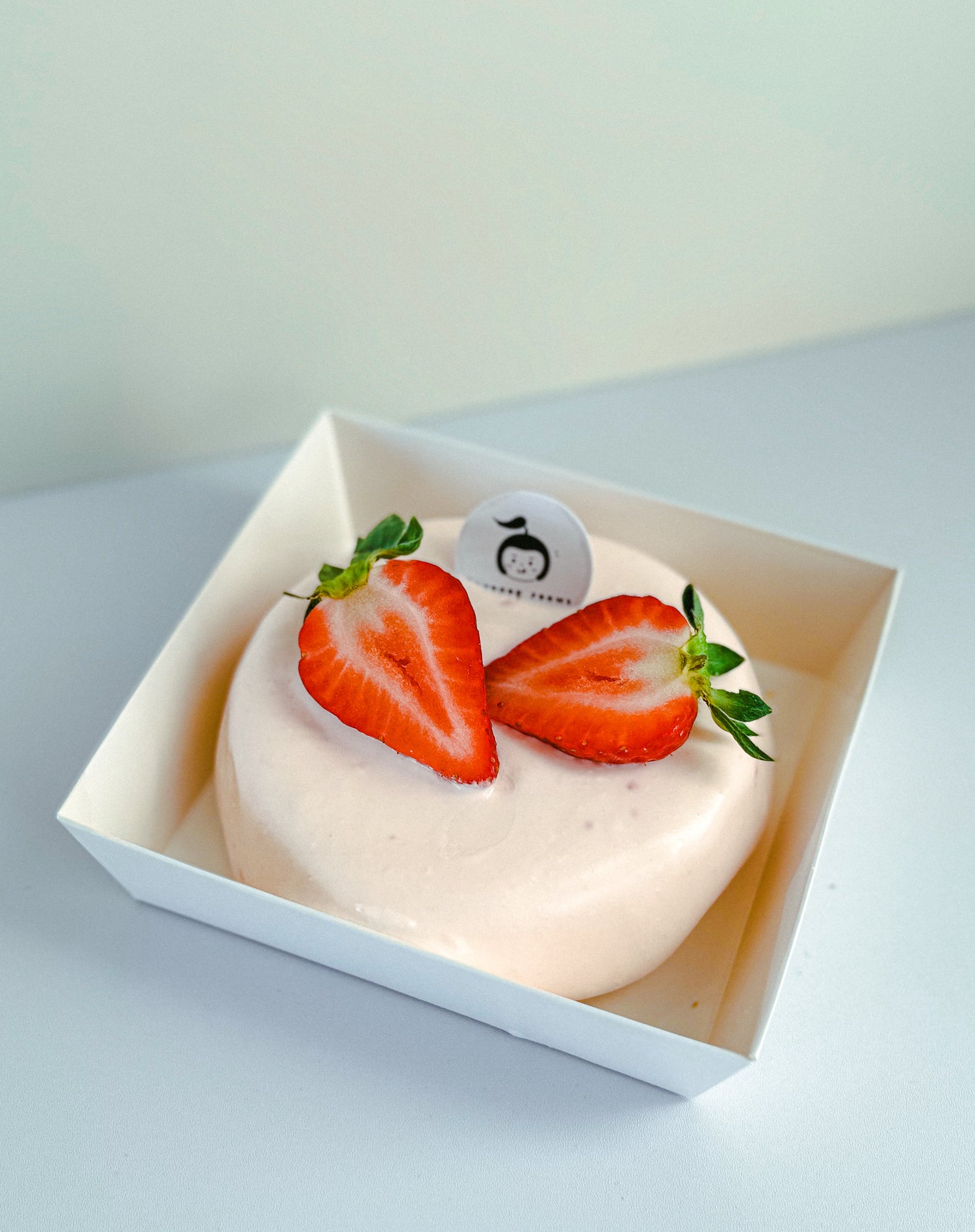 Treat Yourself to Soft Chiffon Cake Paired with Creamy Strawberry Flavor Cream Cheese Whipping Cream .